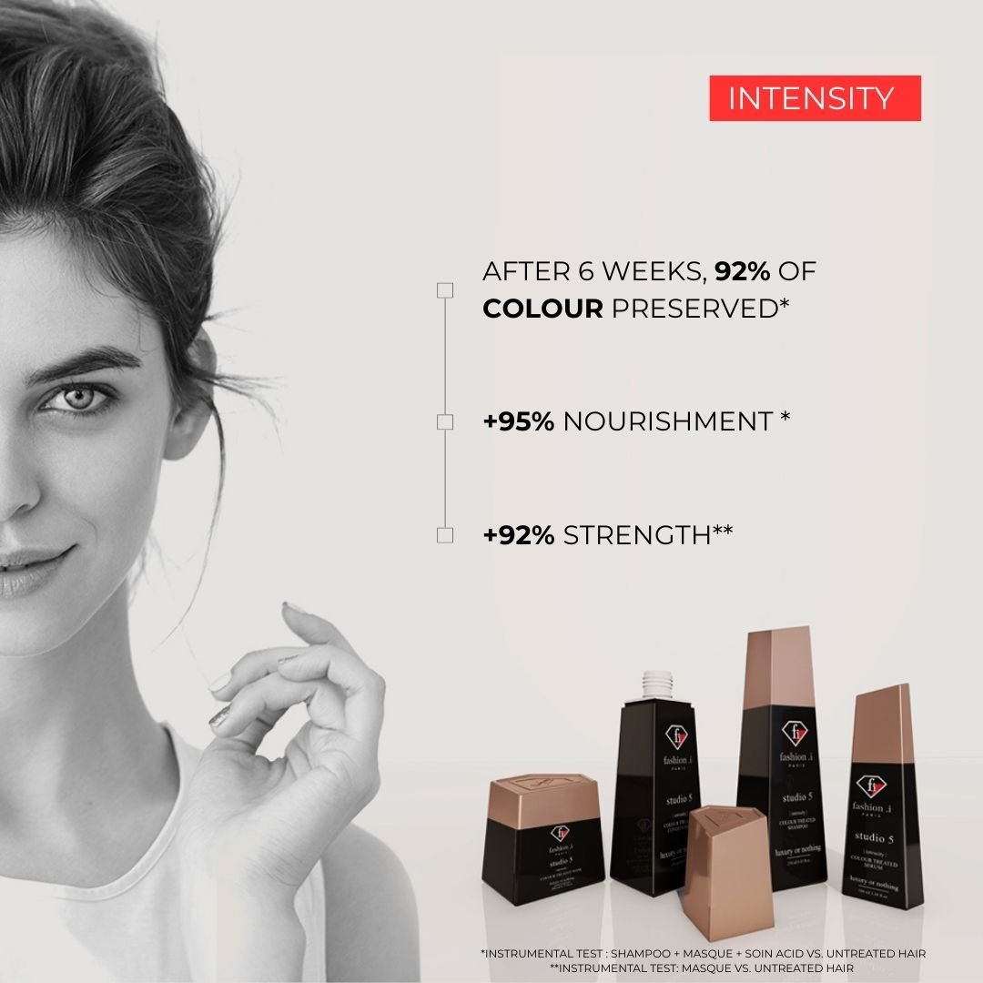 The Fashion I Paris Intensity Mask is a premium colour-protecting hair treatment designed to restore, nourish, and strengthen hair from within. Enriched with Centella Asiatica and a blend of Restoring Acids (Amino Acid, Lactic Acid & Tartaric Acid), this advanced formula is clinically proven to deliver visible results with long-lasting benefits.