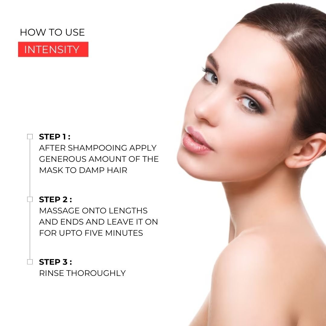 For best results, use the mask 1–2 times a week as part of your haircare routine. Pair with the Intensity Shampoo and Conditioner for complete protection, hydration, and restoration. Regular use ensures visibly healthier, stronger, and frizz-free hair.